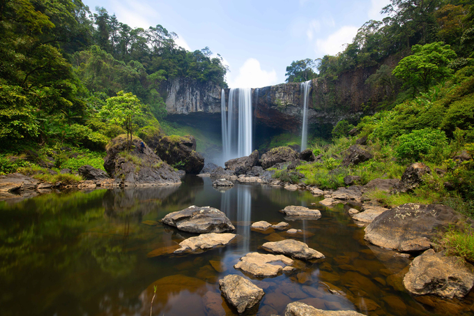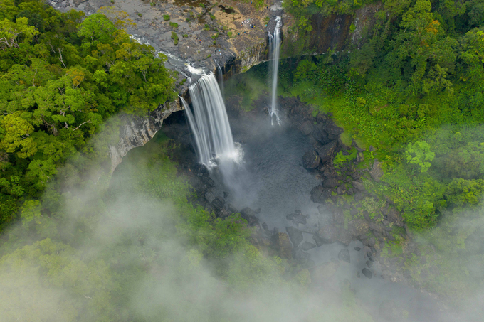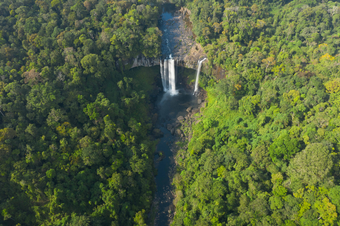 Mùa khô dòng nước thác tuy không nhiều nhưng cả nhóm phải thốt lên hai tiếng "hoành tráng" với dòng thác đổ như dải lụa trắng.