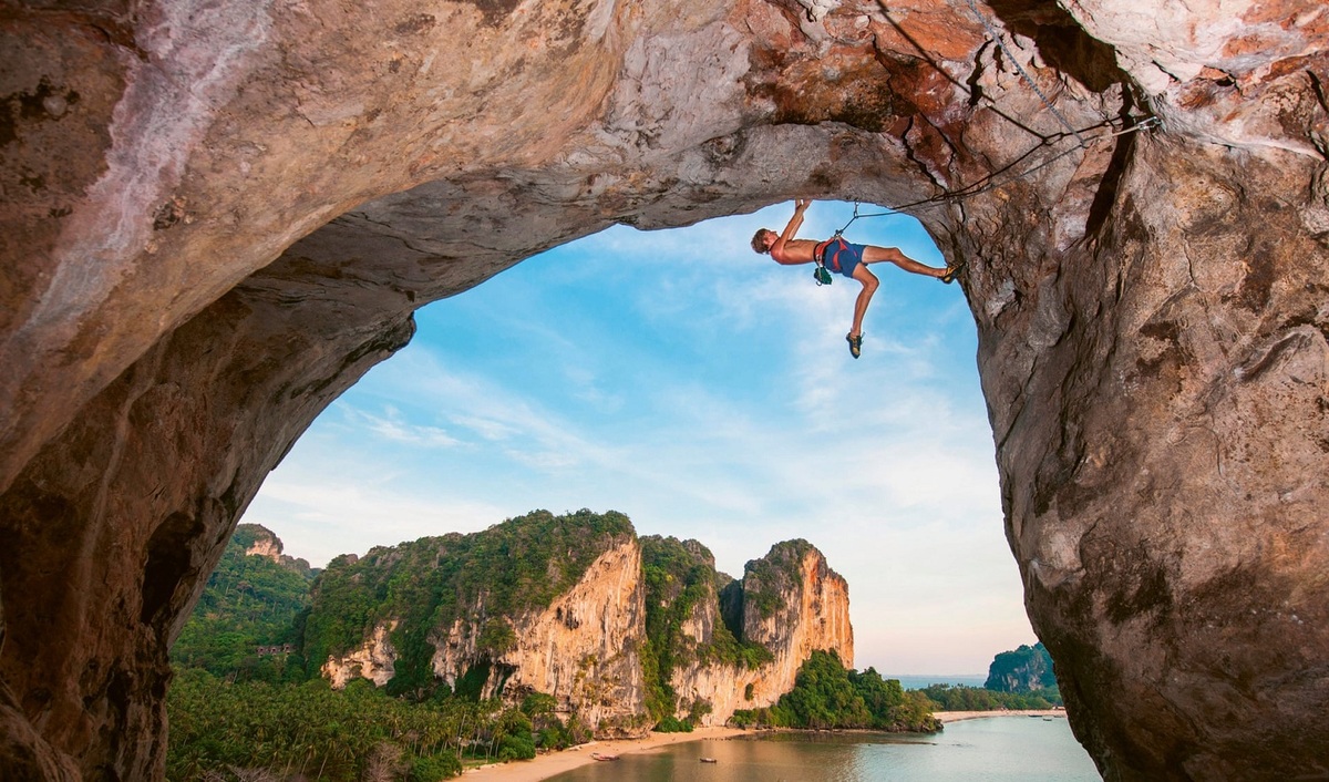 Những cột đá vôi khổng lồ hình thành dạng mái vòm tại bãi biển Railay, tỉnh Krabi, miền nam Thái Lan là nơi thu hút nhiều vận động viên leo núi đến trải nghiệm. Railay có những bãi biển cát trắng và nhiều khỉ sinh sống.