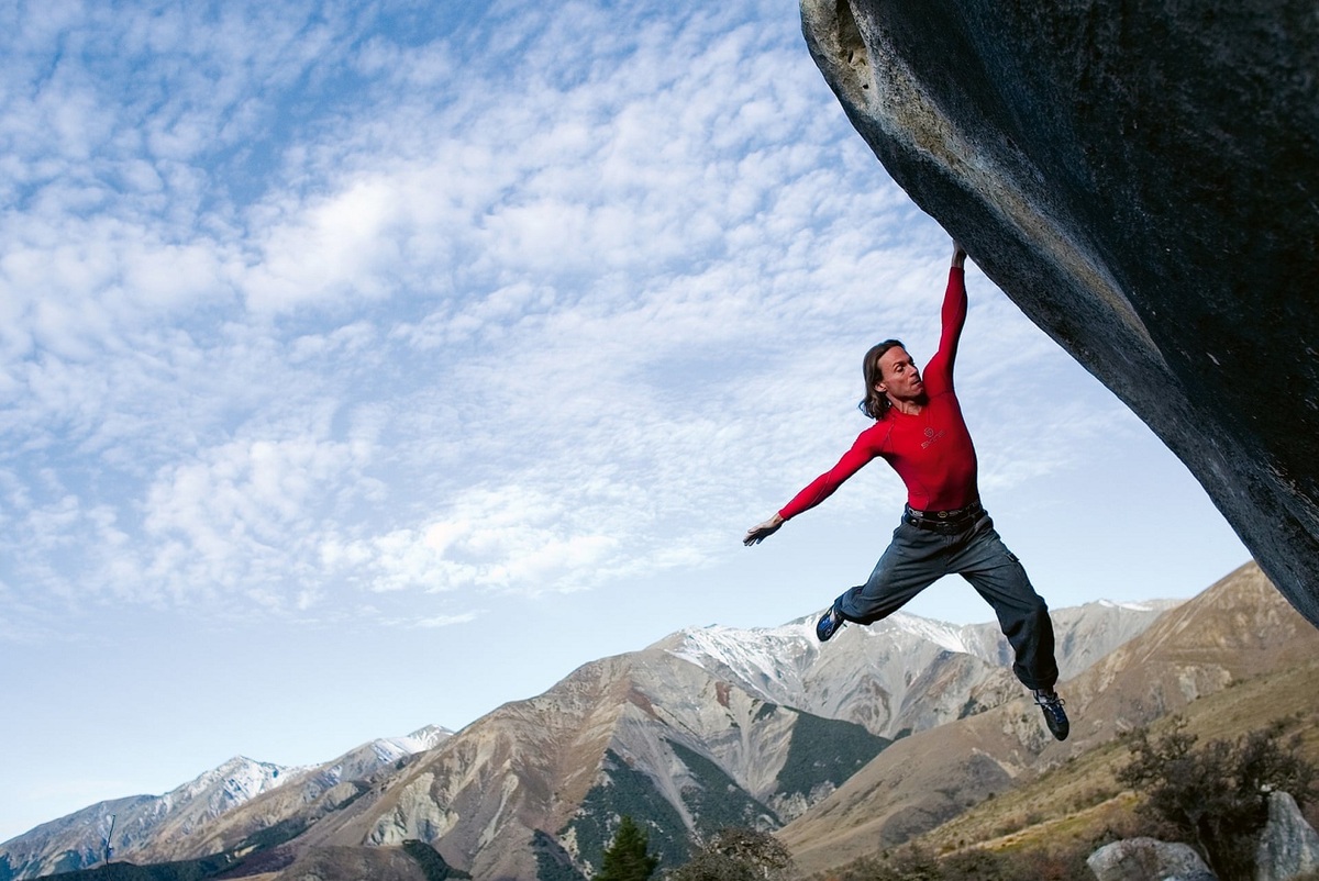 Nhà leo núi Timy Fairfield “treo mình” với một tay bám trên vách đá Castle Hill, gần thành phố Christchurch thuộc đảo Nam, New Zealand. Castle Hill là tảng đá vôi khổng lồ, từng được chọn làm bối cảnh cho bộ phim viễn tưởng Biên niên sử Narnia công chiếu 2005.