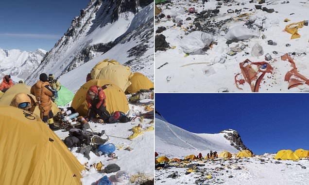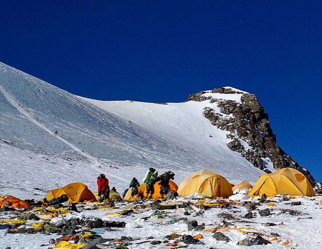 Lều phát quang, dụng cụ hỏng, bình gas rỗng, thậm chí cả chất thải nằm rải rác trên cung đường leo núi. Tất cả đều do con người thải ra. "Thật kinh khủng, tôi không muốn nhìn thêm nữa" - Pemba Dorje Sherpa, người từng 18 lần leo Everest chia sẻ. "Ngọn núi giờ có hàng tấn rác".