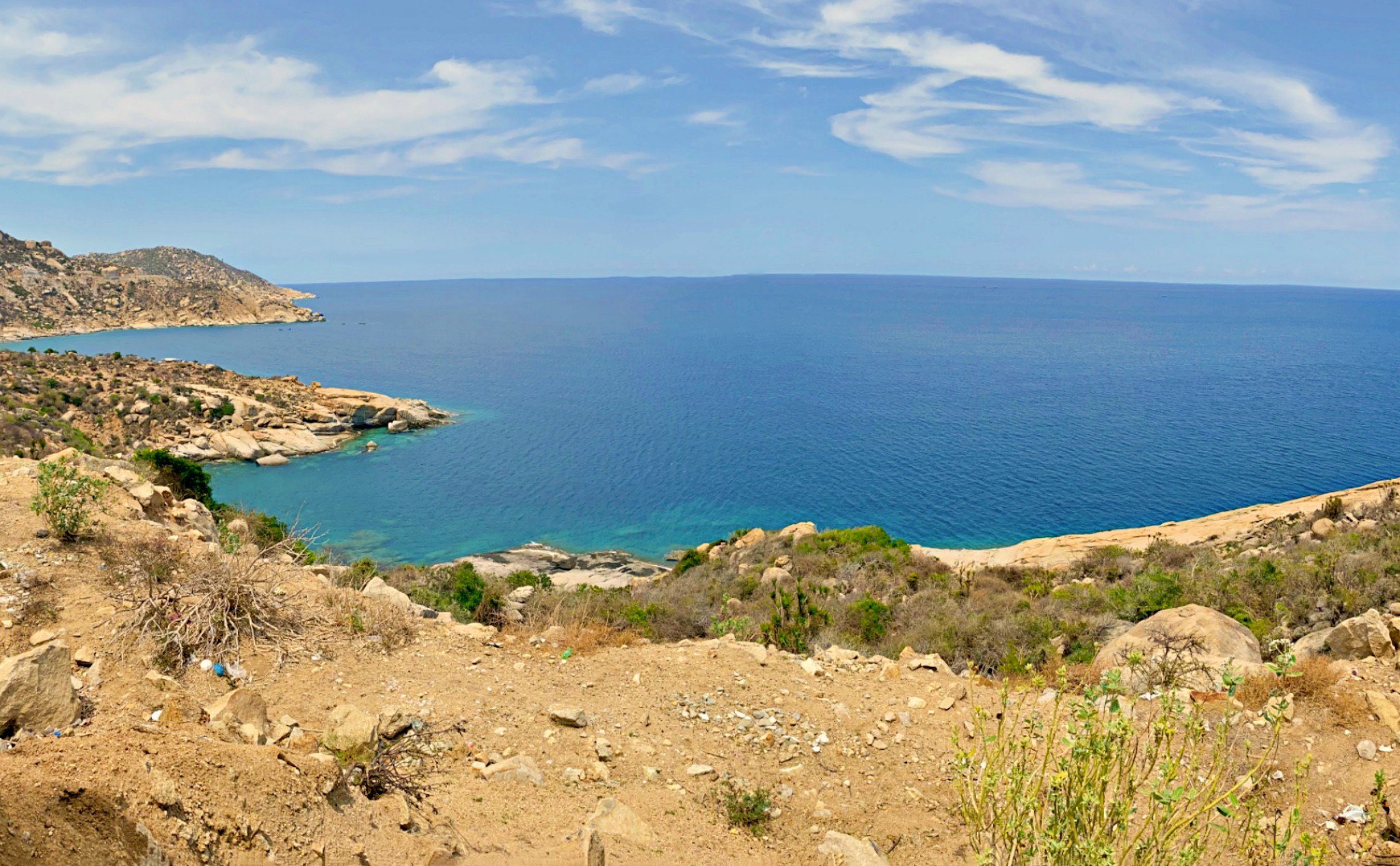 Vậy là chặng về tụi mình quyết định đi theo cung đường biển, để có thể ngắm được nhiều cảnh đẹp và quan trọng là đường vắng, chạy êm. Tụi mình xuất phát từ Phan Rang lúc 11:30 trưa, đi theo cung đường biển và dừng 5 điểm trong suốt hành trình 412km.