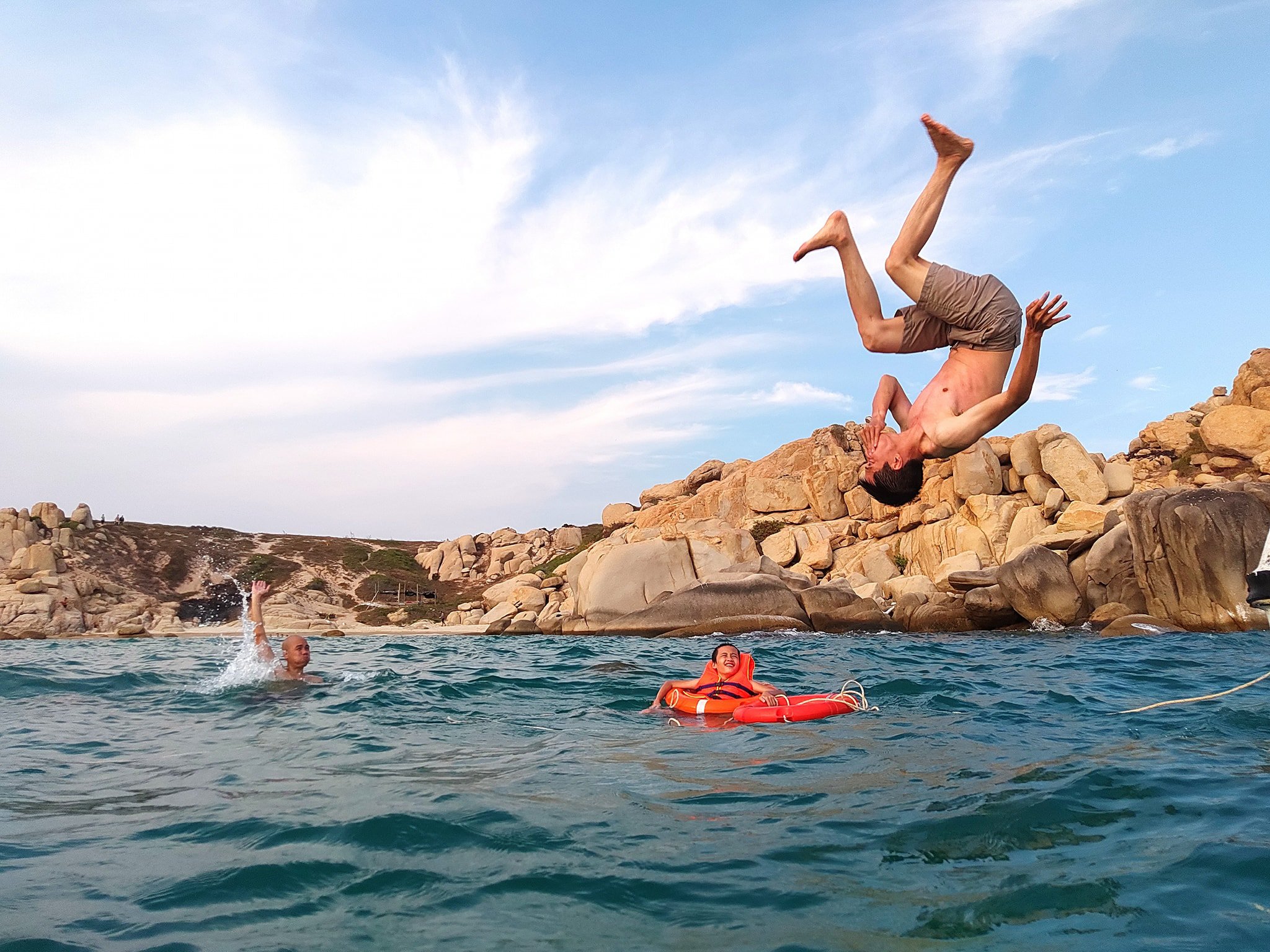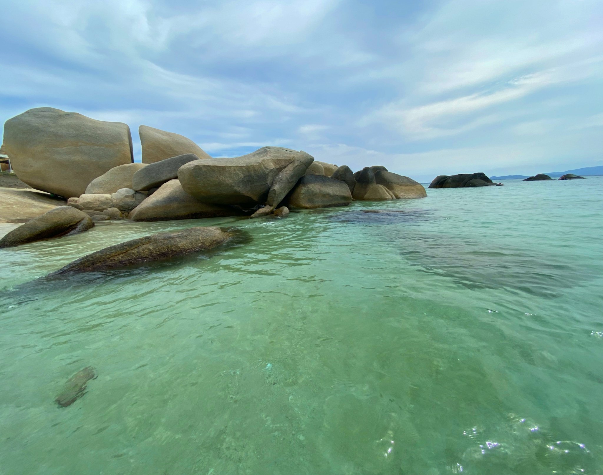 Đây là bãi tắm ở Hòn Câu, hay còn gọi là Cù Lao Câu, thuộc Tuy Phong Bình Thuận. Chỗ này biển sạch nước trong vắt có thể nhìn thấy cá bơi lội, một số bạn trong nhóm lặn ra xa một chút để ngắm san hô đẹp lắm. Để đến đây bạn cần thuê ghe hoặc ca nô, Cano tụi mình thuê giá 3.5 triệu, riêng cho nhóm 8 người có đi về và dừng ở những điểm tụi mình muốn để quay phim chụp hình, tuy nhiên lúc đi họ dùng cano lớn để chở và có đi chung với đoàn khác, lúc về thì mới đi cano nhỏ chở riêng đoàn mình để ghé bãi tắm Tiên. Lúc tụi mình đi từ bến tàu là 13:30 về lại bến 17:30.