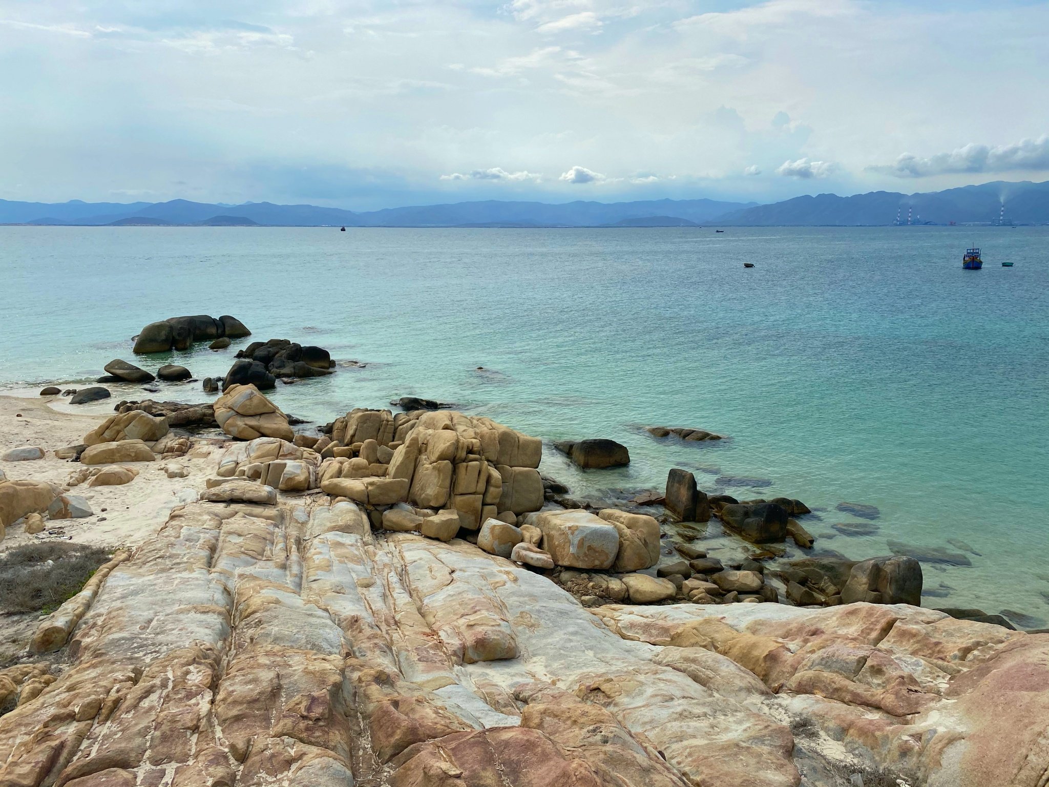 Bãi tắm ở Hòn Cò, Cà Ná. Bọn mình ghé đây ăn trưa chứ không có tắm biển, nhưng mà ngồi ngắm vầy cũng thích ha! Nhà Hàng Hải Âu ở Hòn Cò Cà Ná bán đồ ăn ngon mà giá cũng mềm, nên ghé đây ăn và nghỉ trưa một chút rồi đi về thì rất hợp lý.