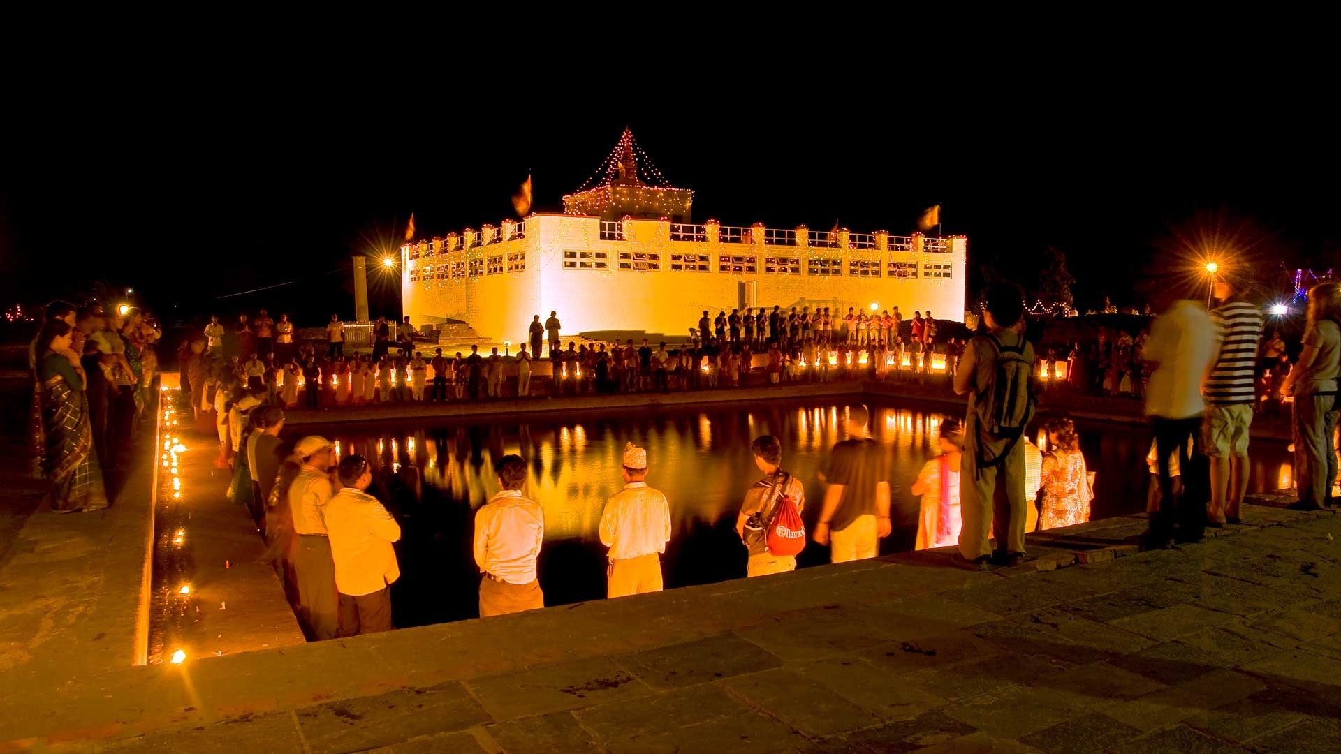 Điểm thiêng liêng thứ nhất chính là Lumbini, tọa lạc tại làng Rummindei, dưới chân dãy Tuyết Sơn hùng vĩ, cách biên giới Sonauli của Nepal - Ấn Độ 27km. Tại hoa viên này, hơn 2.600 năm trước, trên đường trở về quê hương Devadaha của mình, hoàng hậu Maya đã hạ sanh Thái tử Siddhartha (Tất Đạt Đa). Năm 623 TCN, nhân loại đã hoan ca chào đón Đấng Đại giác Thế tôn ra đời.