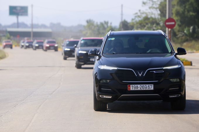 Các xe tham dự hành trình cùng tham gia xếp hình chữ V, tượng trưng cho logo của hãng xe Việt. Đối với nhiều người tham gia hành trình, đây là lần đầu tiên họ tham gia một cung đường dài, với số thành viên đông như caravan của VinFast.