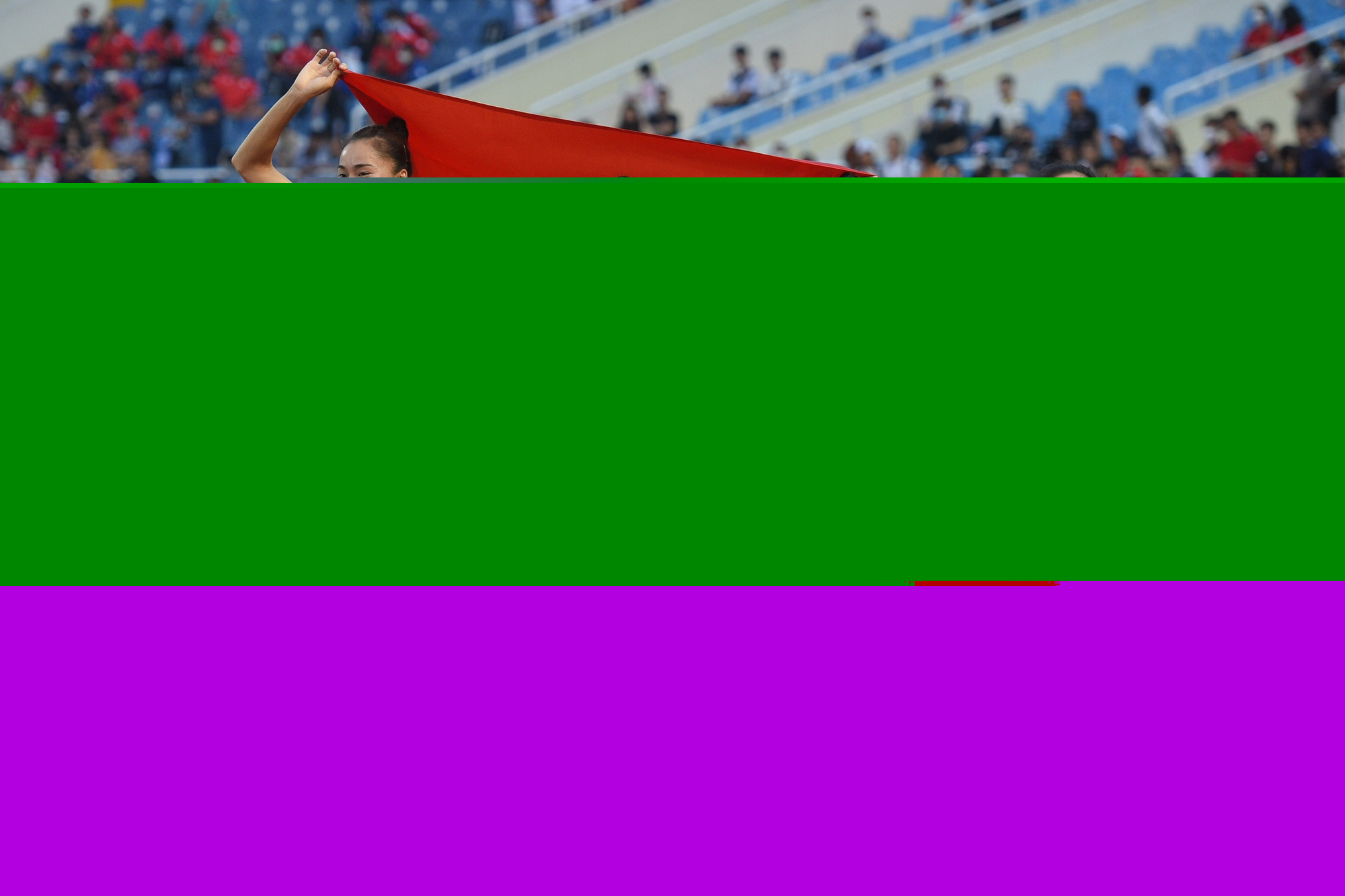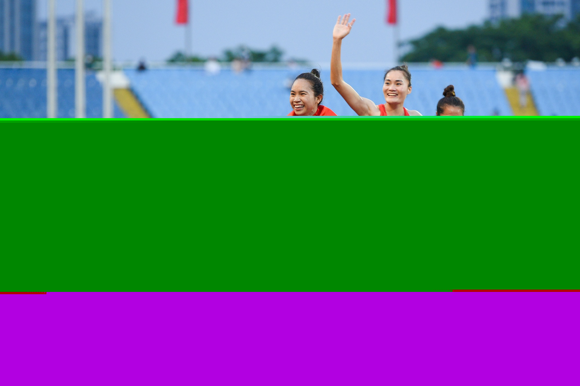 Hàng nghìn CĐV trên sân Mỹ Đình reo hò, chúc mừng cùng các cô gái vàng của điền kinh Việt Nam.
