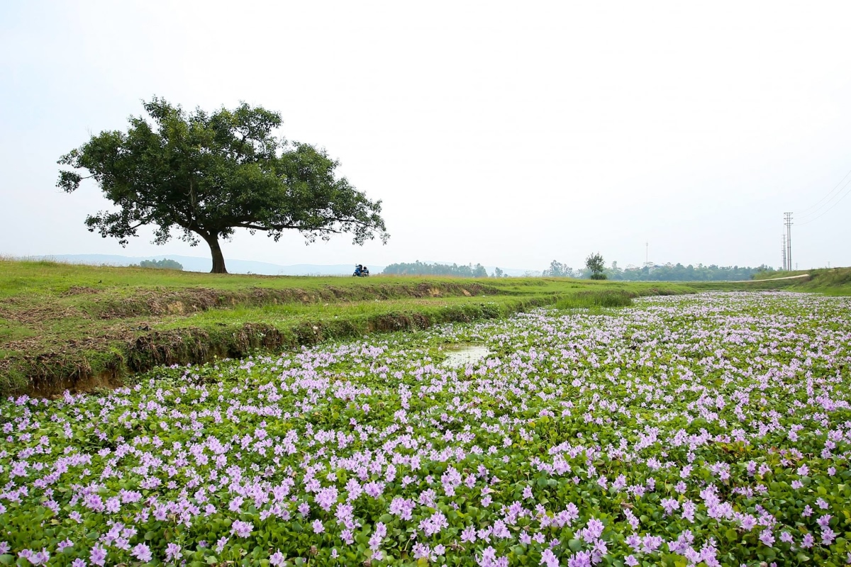 Cây cô đơn giữa đồng quê yên bình, lục bình trôi khoe sắc như níu chân du khách tại huyện Bình Xuyên, phía đông tỉnh Vĩnh Phúc.