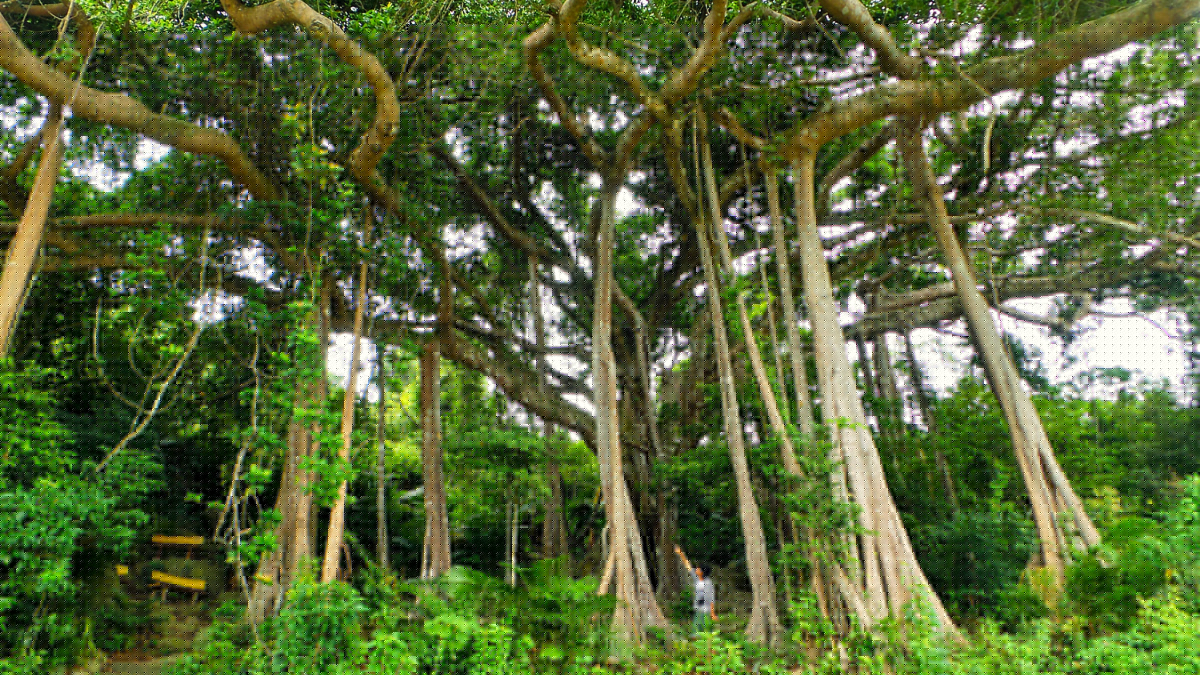 Đến Đà Nẵng, hai bạn ghé thăm cây đa hơn 800 tuổi trên bán đảo Sơn Trà. Cây đa cao 22 m, chu vi thân chính và cụm thân phụ 85 m, là cây di sản đầu tiên của TP Đà Nẵng. Cây gây tạo không gian xanh mát, rộng lớn như một máy điều hòa tự nhiên, khiến không khí mát mẻ giữa trưa hè.