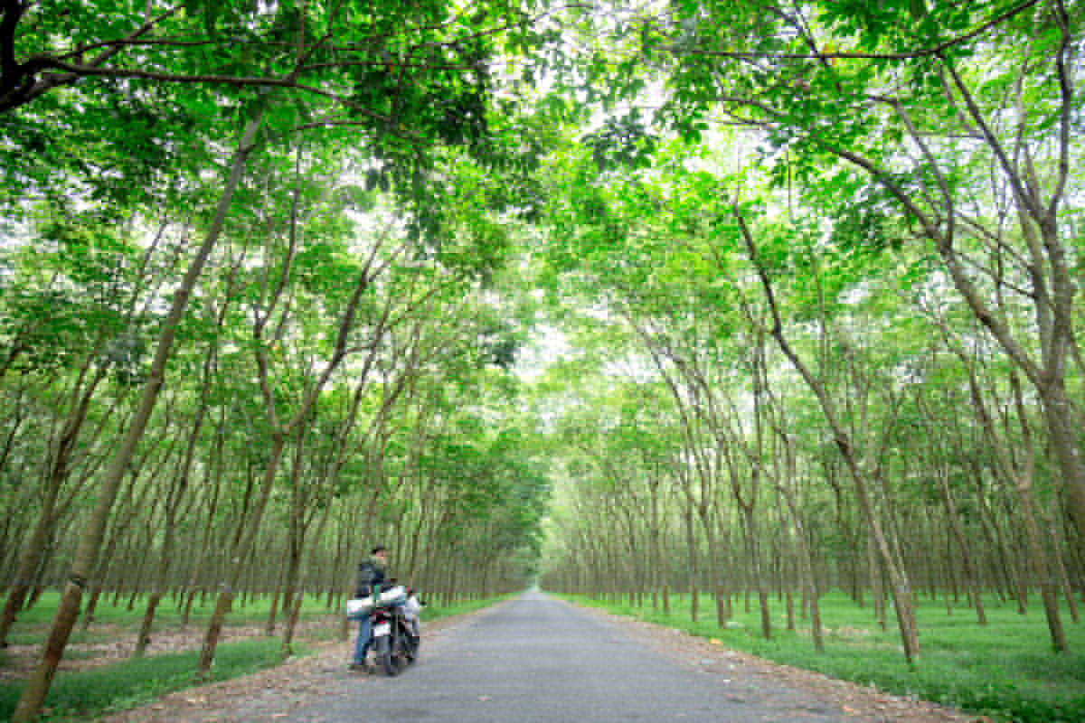 Cảm giác được gần gũi với thiên nhiên, được bình yên, che chở bởi những hàng cây xanh mát", anh nói. Ảnh chụp tại các cánh rừng cao su xanh um tại Tây Ninh.