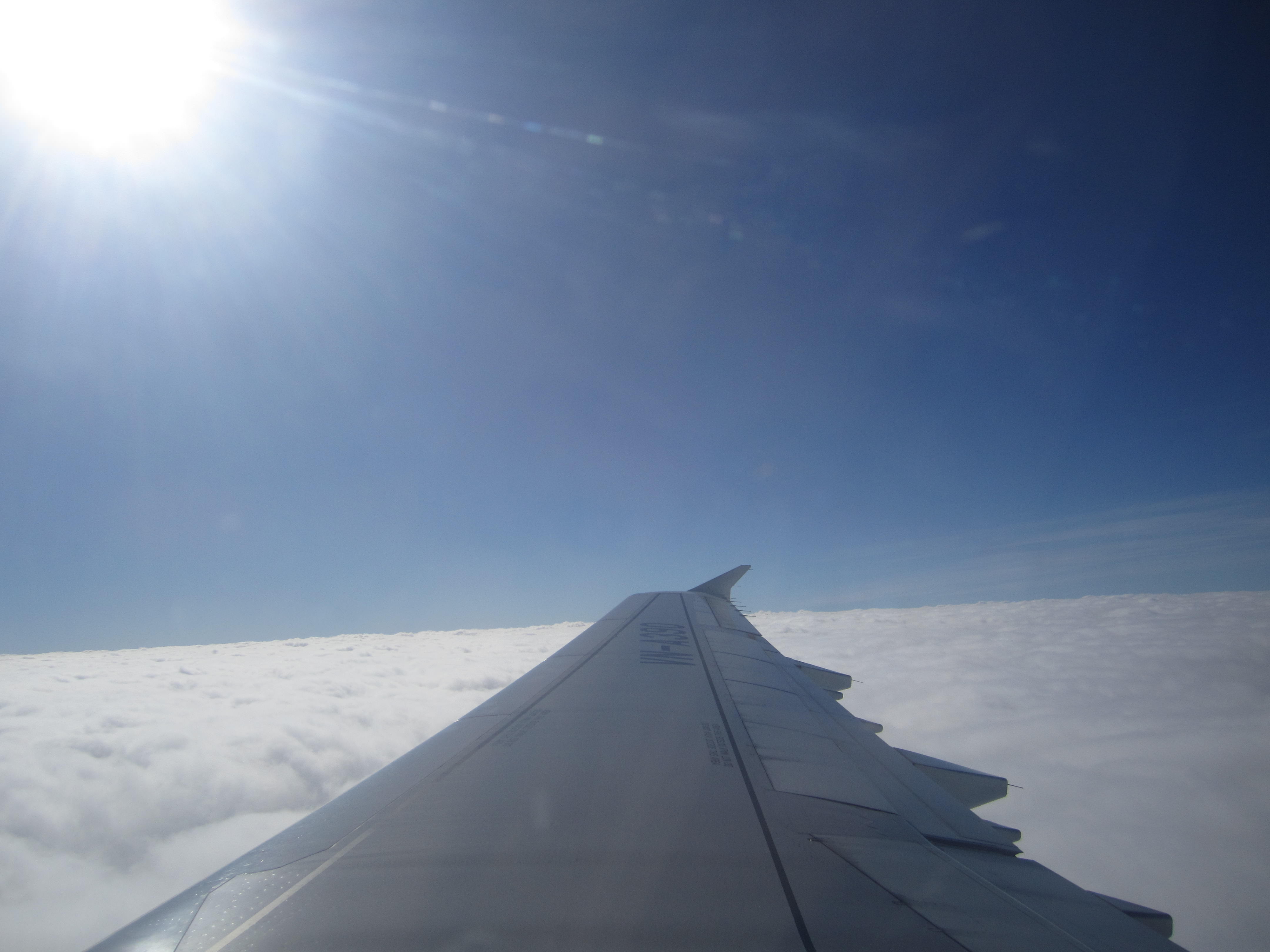 Nghe tiếng động cơ rõ mồn một. Woaw woaw!!! Được ngồi gần cửa sổ. Mây, chuyển mình từ màu xám xịt và xanh dần. Trên máy bay không biết có phải lần đầu tiên không cơ mà nó quan tâm đến cả cửa