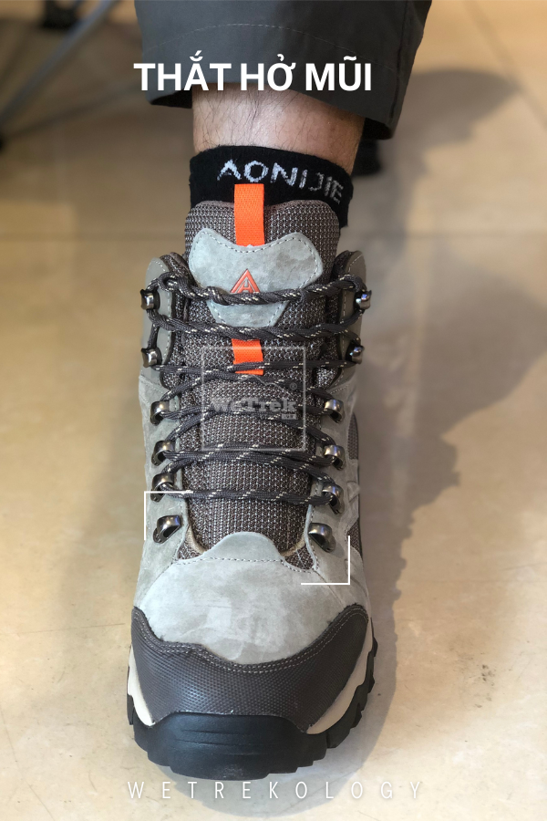 Thắt dây giày hiking bằng cách thắt hở mũi.