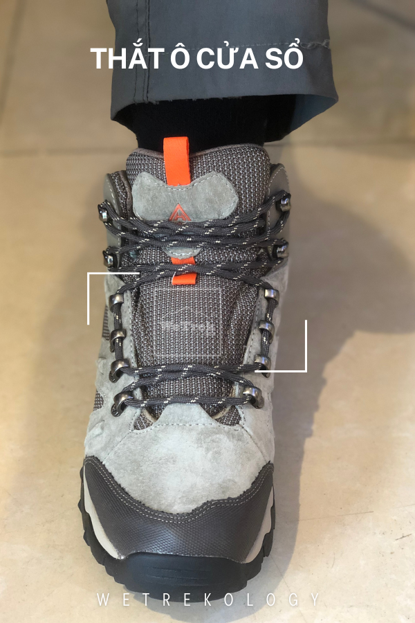 Thắt dây giày hiking bằng cách thắt cửa sổ.