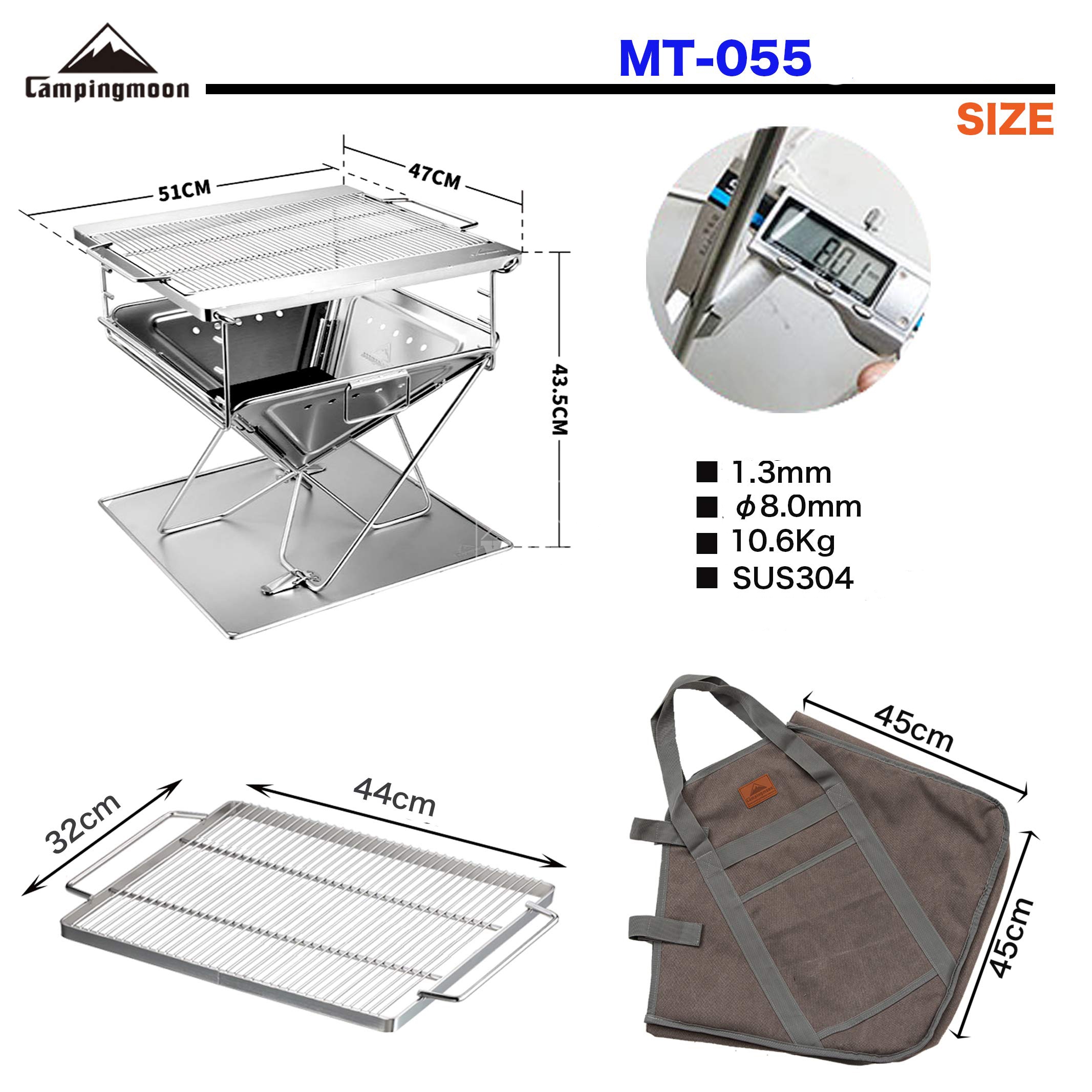 Bếp nướng cắm trại Campingmoon MT-055 cho 10 người. Thuận tiện sử dụng trong những buổi BBQ ngoài trời. Bếp cũng có thể sử dụng để nhóm củi, làm lửa trại.