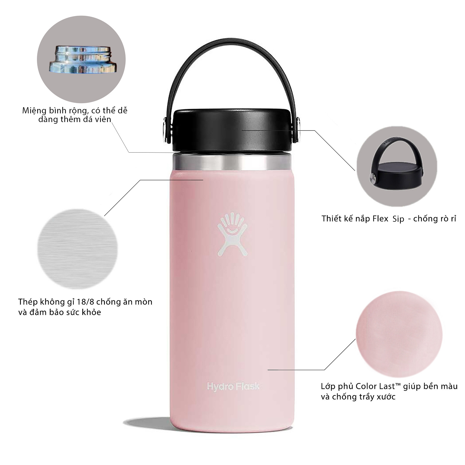 Bình nước giữ nhiệt 473ml Hydro Flask Wide Flex Cap 16 OZ W16BTS không chứa BPA và có thể rửa bằng máy rửa chén.