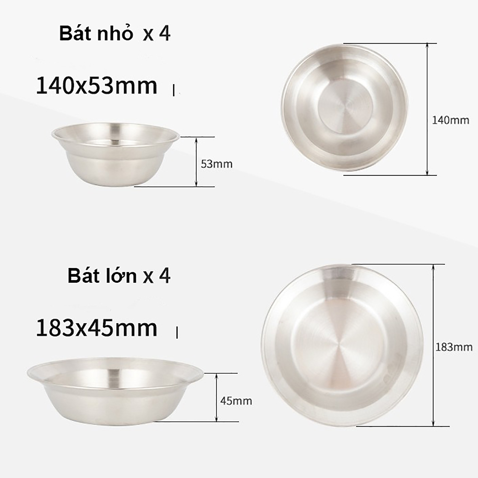 04 tô lớn – Phù hợp để chứa các món súp, lẩu hoặc canh.