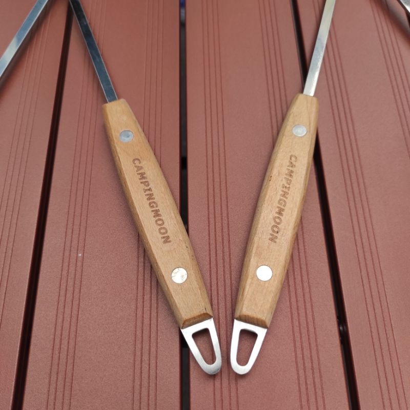 Bộ xiên nướng dã ngoại Campingmoon K-480 công cụ giúp người sử dụng có thể xiên các món ăn như thịt, rau củ, hải sản vào que tre hoặc que gỗ để nướng trên lửa hoặc trên bếp than hoặc các thiết bị nướng khác.