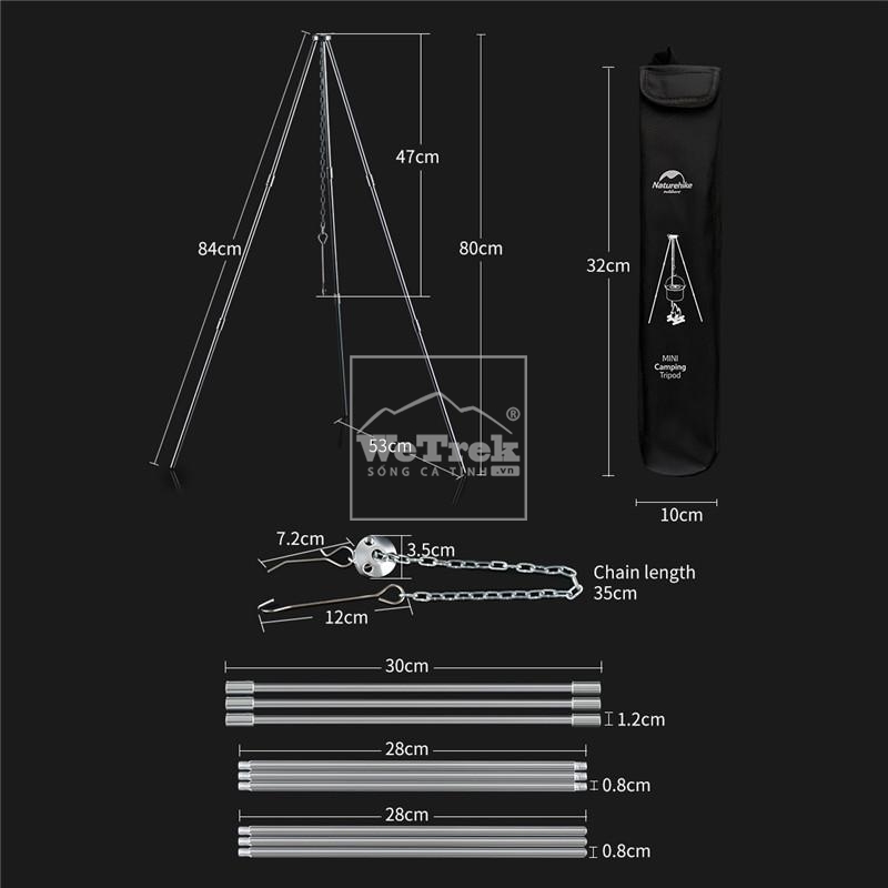 Sản phẩm bao gồm | Giá treo nồi dã ngoại Naturehike Mini Camping Tripod NH17S00S-G - 9676 |