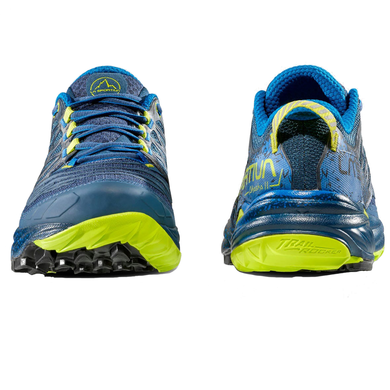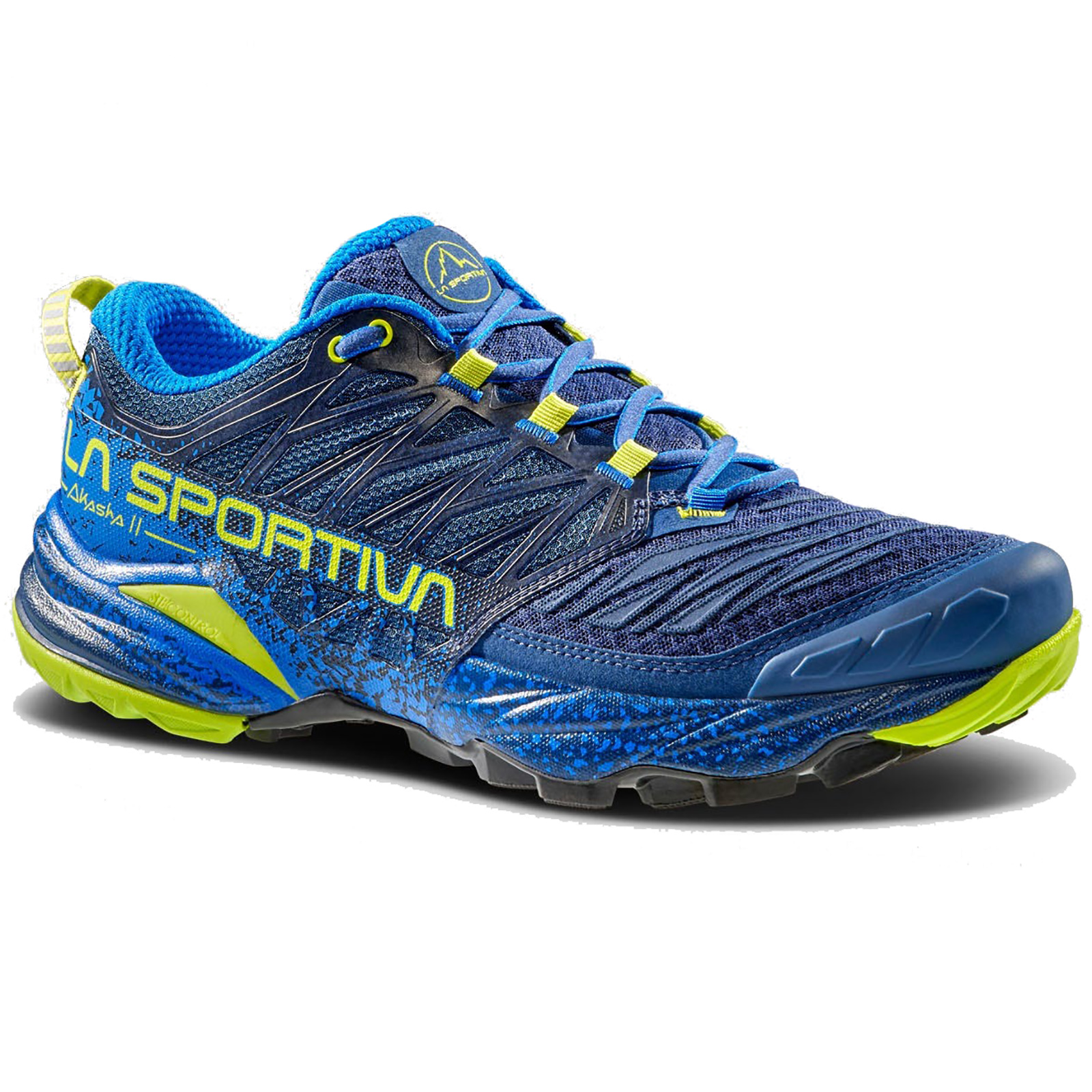 Giày chạy bộ nam La Sportiva Running Shoes Akasha II 56A639729 có kích thước nhỏ hơn so với các dòng La Sportiva khác. Người dùng thường phải chọn kích thước lớn hơn so với kích thước thông thường của họ. Ví dụ, một người thường mang cỡ 11.5 Mỹ có thể cần chọn cỡ 13 (47 EU) cho Akasha II. Trọng lượng của mỗi chiếc giày là (395g), phù hợp cho các đường mòn kỹ thuật.