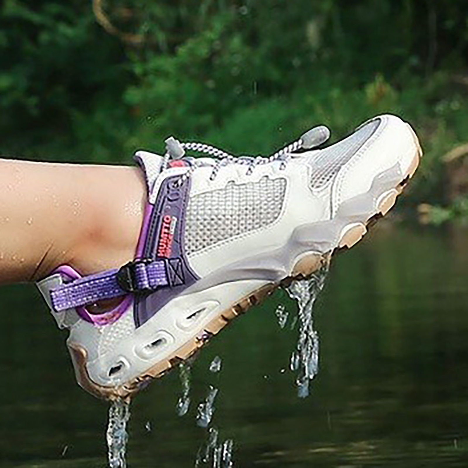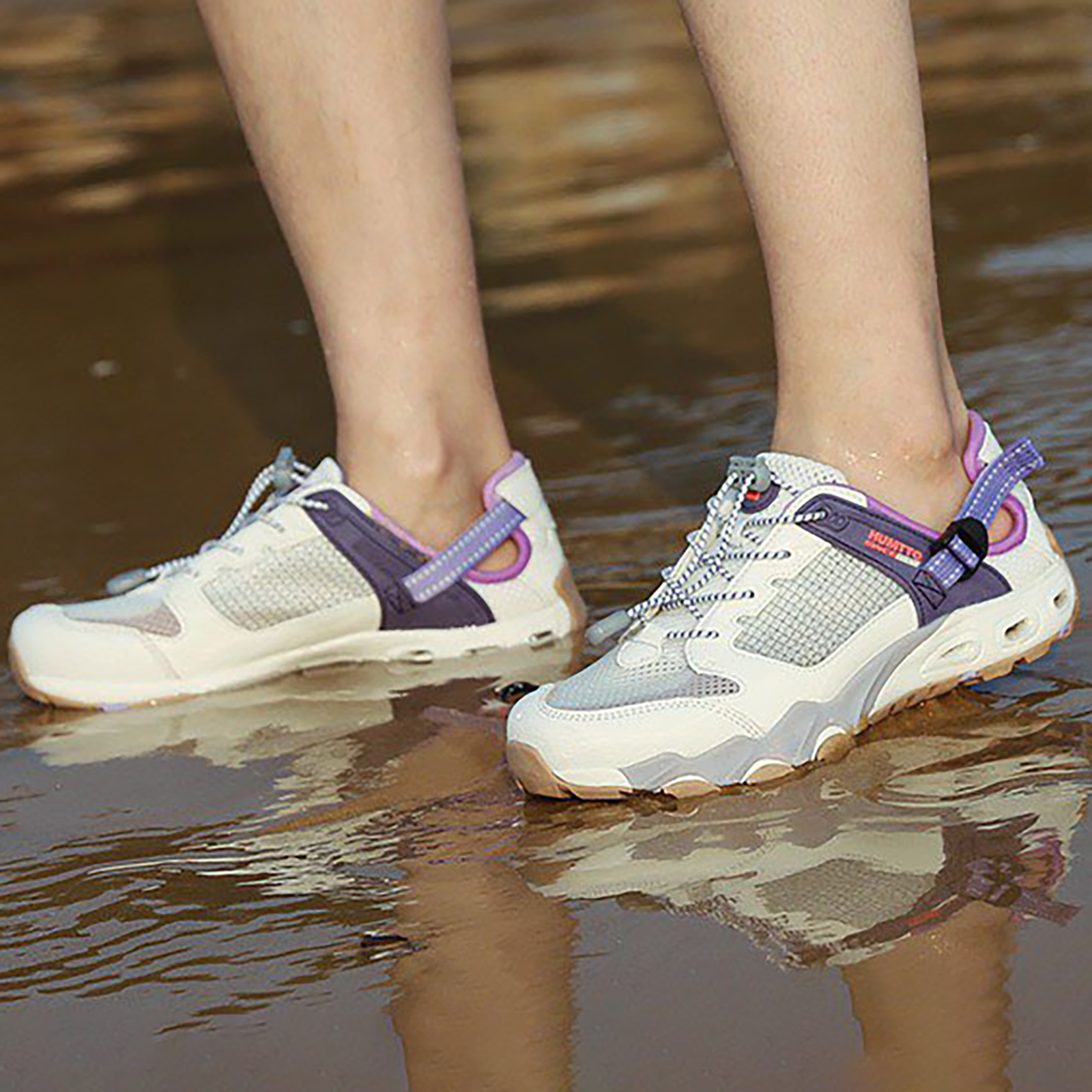 Đế giày có thiết kế thoát nước cùng chất liệu ma sát cao phù hợp sử dụng trong những hoạt động lội suối hay là đi hang.