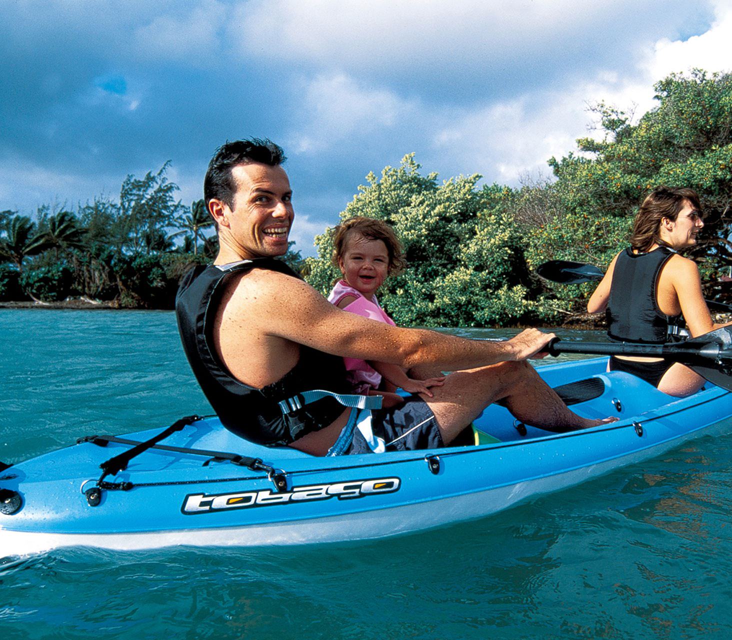 Thuyền Kayak Tobago là một chiếc thuyền hoàn hảo cho các gia đình đam mê chèo thuyền du lịch, dã ngoại... Thuyền thiết kế cho 2 người lớn ngồi và chở thêm được một trẻ nhỏ. Có khoang để đồ chống nước để cất vật dụng cá nhân. Dáng thuyền chuyên nghiệp dễ dàng lướt đi trên mặt nước khiến việc chèo thuyền trở nên nhẹ nhàng hơn. Kayak Tobago có thêm một bánh xe nhỏ ở đuôi thuyền thuận tiện cho việc vận chuyển thuyền trên bờ.