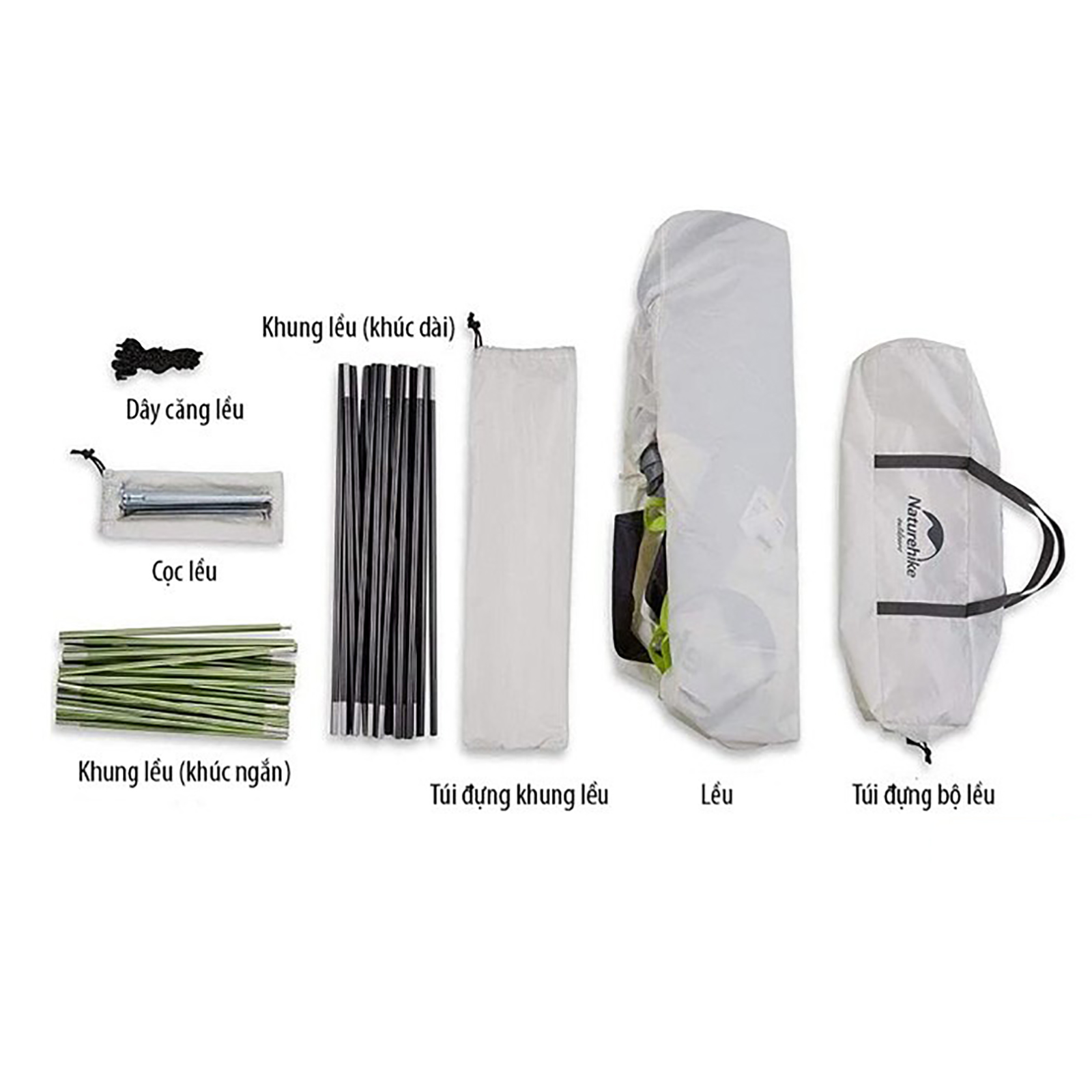 Sản phẩm bao gồm | Lều cắm trại 4 người Naturehike Foldable Waterproof Single Layer Tent NH18Z001-P - 9551 |