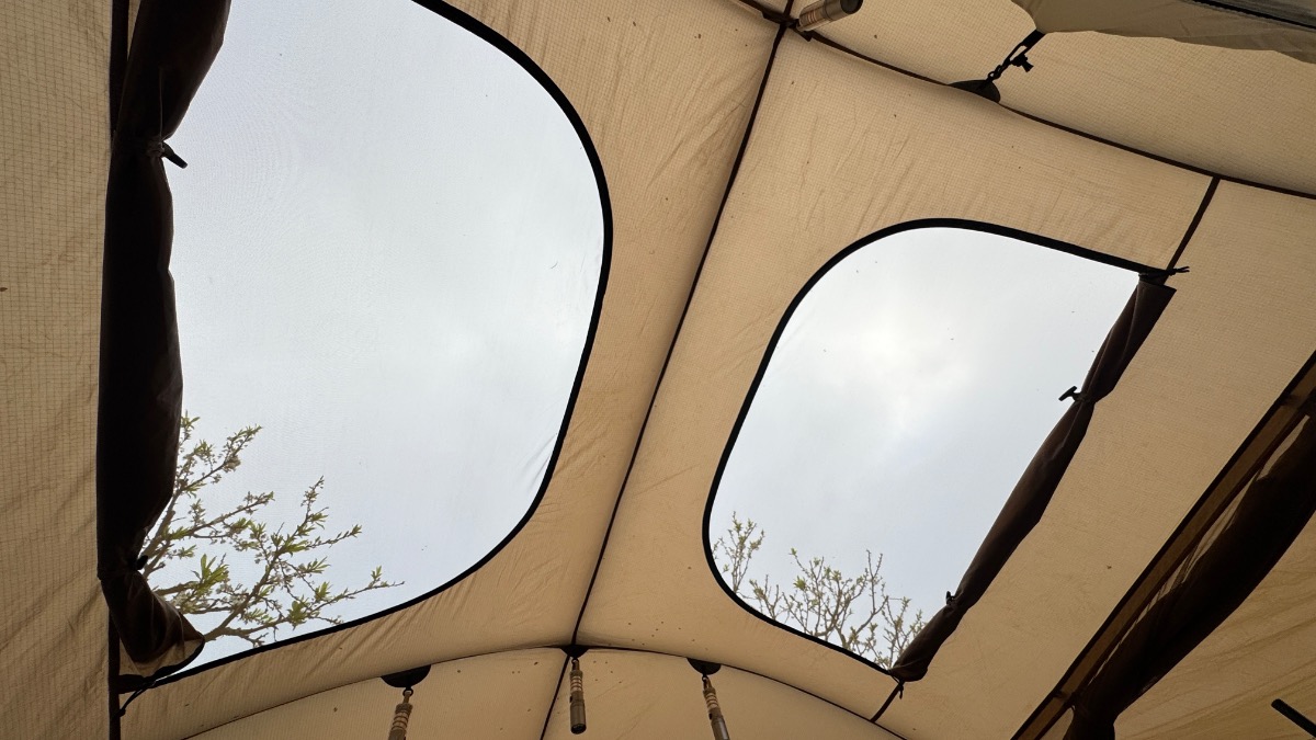 Bảo vệ tối ưu trong mọi điều kiện thời tiết: Lều được trang bị mái che và tấm phủ chuyên dụng giúp ngăn ngừa thiệt hại do mưa và tuyết, đồng thời tăng cường khả năng che nắng và giảm thiểu sự ngưng tụ hơi nước, đảm bảo bạn luôn khô ráo và thoải mái trong mọi điều kiện thời tiết.