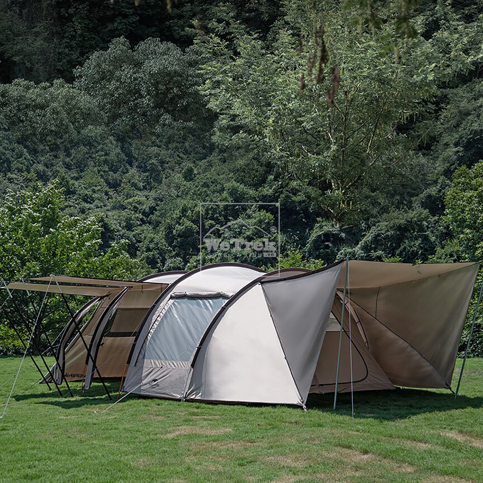 Với một không gian lều cắm trại rộng, nhiều không gian công năng sử dụng từ chỗ nghỉ. Tới không gian sinh hoạt dưới mái hiên che nắng dưới mái tăng phía trước.