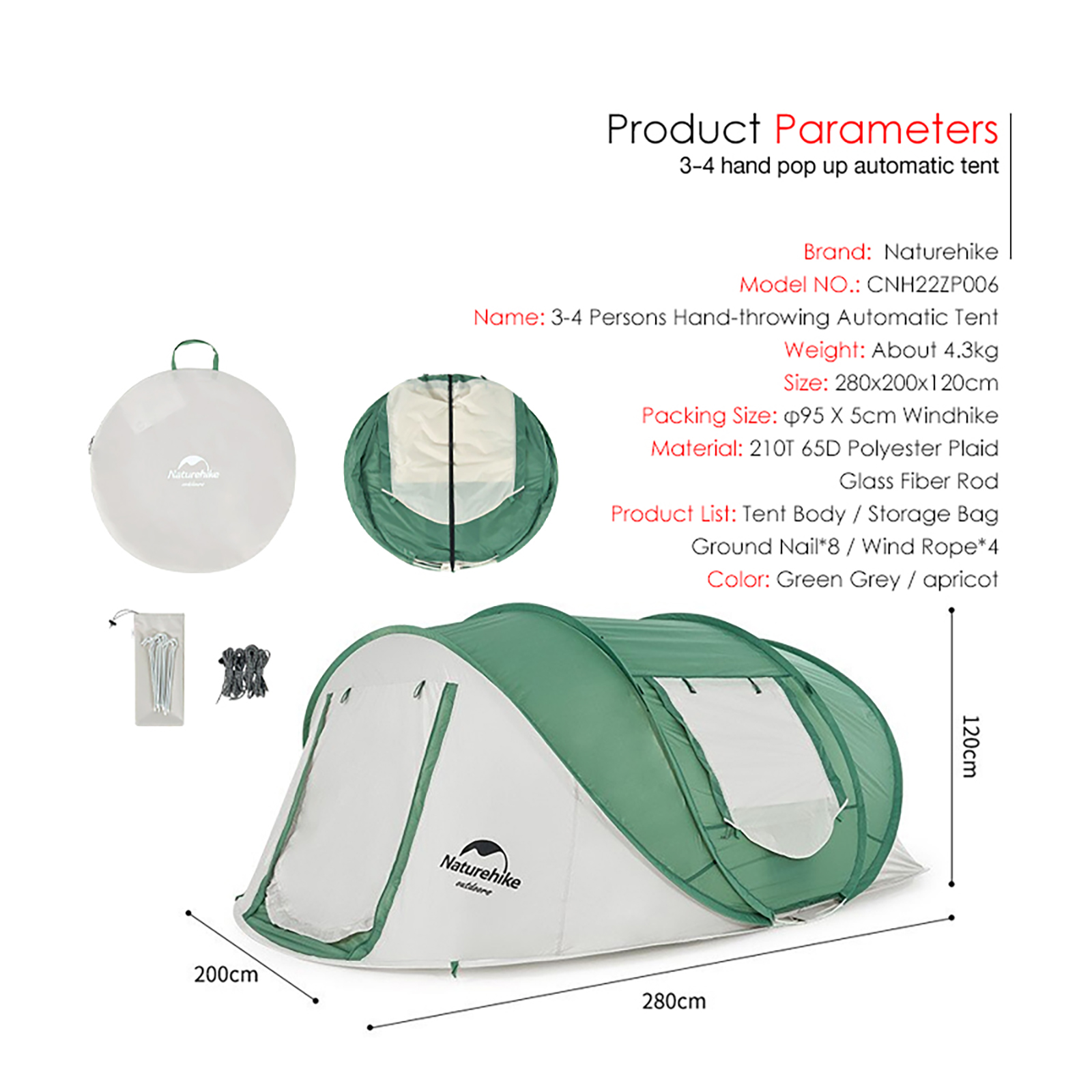 Lều tự bung 3-4 người Naturehike CNH22ZP006 có một khung xương linh hoạt được tích hợp sẵn trong vải của lều. Khi bạn tháo vỏ và tung nó lên không gian, khung xương sẽ tự động mở ra và lều sẽ tự động bung ra và lắp đặt trong vòng vài giây. Quá trình này giúp tiết kiệm thời gian và công sức, đồng thời mang lại sự tiện lợi và dễ dàng trong việc sử dụng lều.