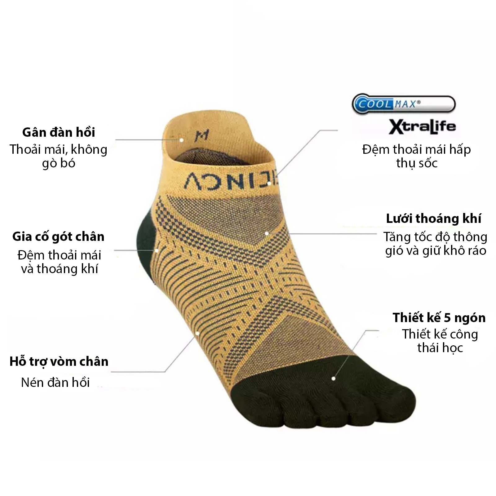 Sản phẩm | Tất chạy bộ xỏ ngón cổ thuyền Aonijie Toe Socks E4824 |