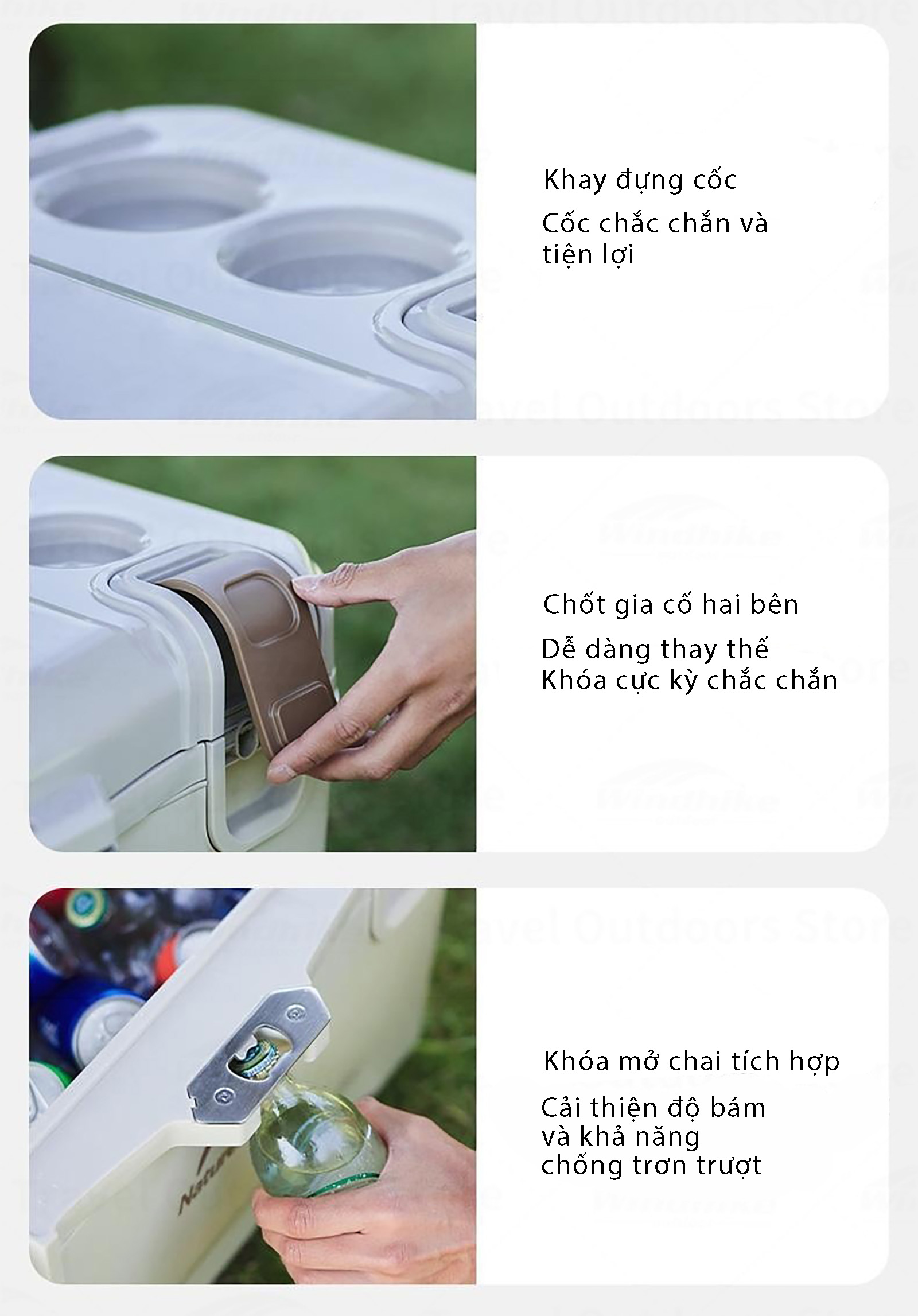 Thùng đá giữ nhiệt CNH22CJ10001 của Naturheike có khả năng giữ lạnh trong suốt 72 giờ, tương đương 3 ngày. Điều này giúp bạn dễ dàng duy trì thực phẩm và nước uống lạnh ngay cả khi ở xa nguồn cung cấp điện hoặc tại những nơi không có tủ lạnh.