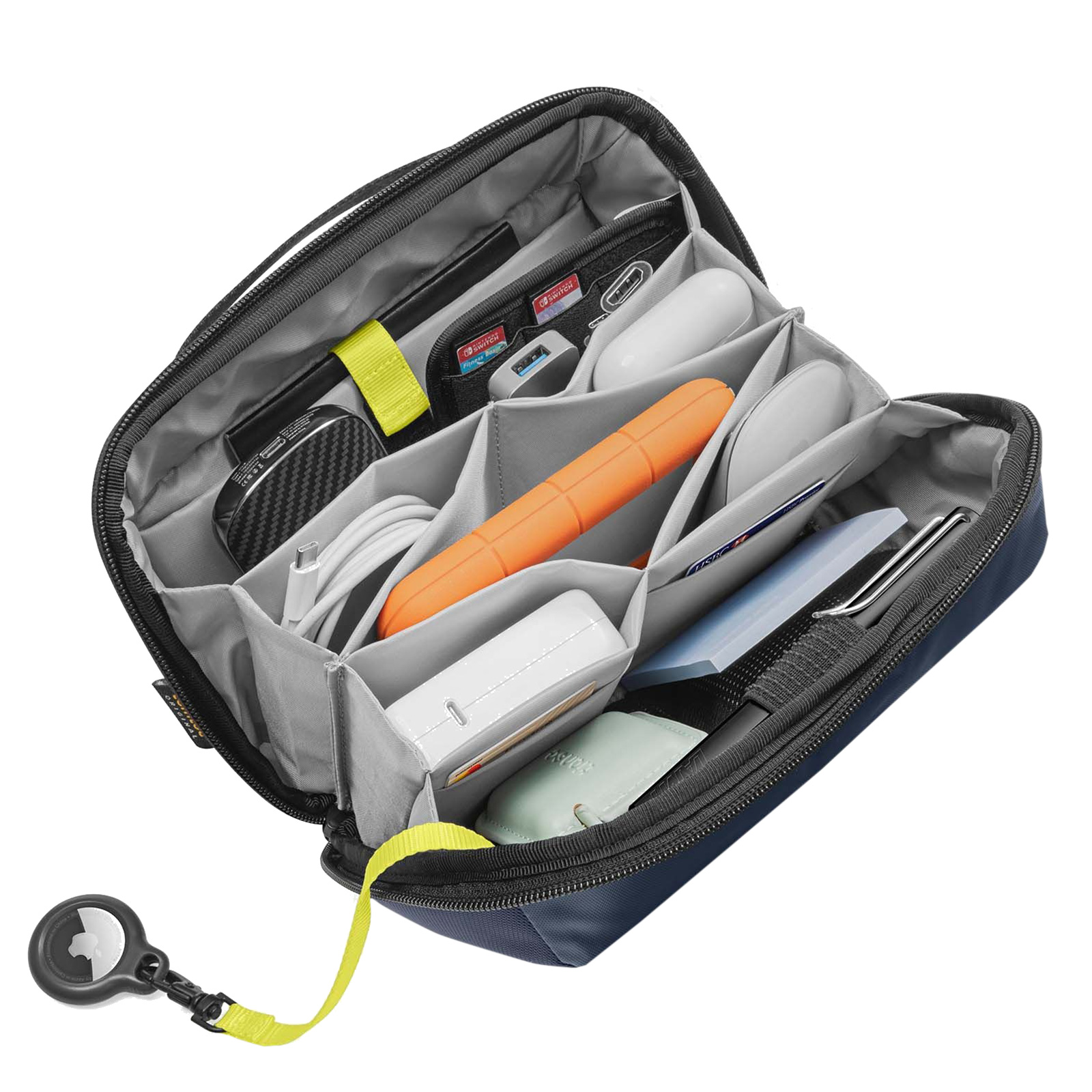 Túi phụ kiện Tomtoc Navigator Accessory T13M1B1 được thiết kế với tổng cộng 13 ngăn khác nhau, các ngăn chứa vật dụng hàng ngày như bút, pin, thẻ, và thiết bị chuyển đổi USB. Các vòng dây đeo được thiết kế không trơn bằng thun giữ cho các vật dụng luôn nằm ở vị trí cần thiết và dễ dàng truy cập.