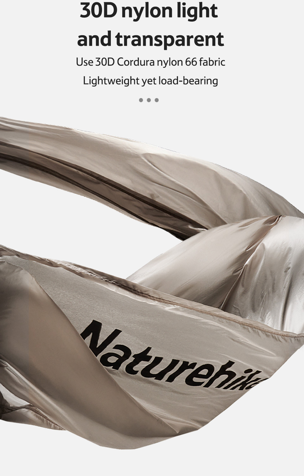 Một trong những ưu điểm nổi bật của võng dã ngoại Naturehike Swing Hammock NH21DC008 chính là khả năng siêu nhẹ và tiện lợi để mang theo trong những chuyến đi. Với chất liệu vải nylon 20D Nylon 66 bền chắc, võng này chỉ nặng khoảng vài trăm gram, giúp bạn dễ dàng gập gọn và đựng trong balo hay túi xách.