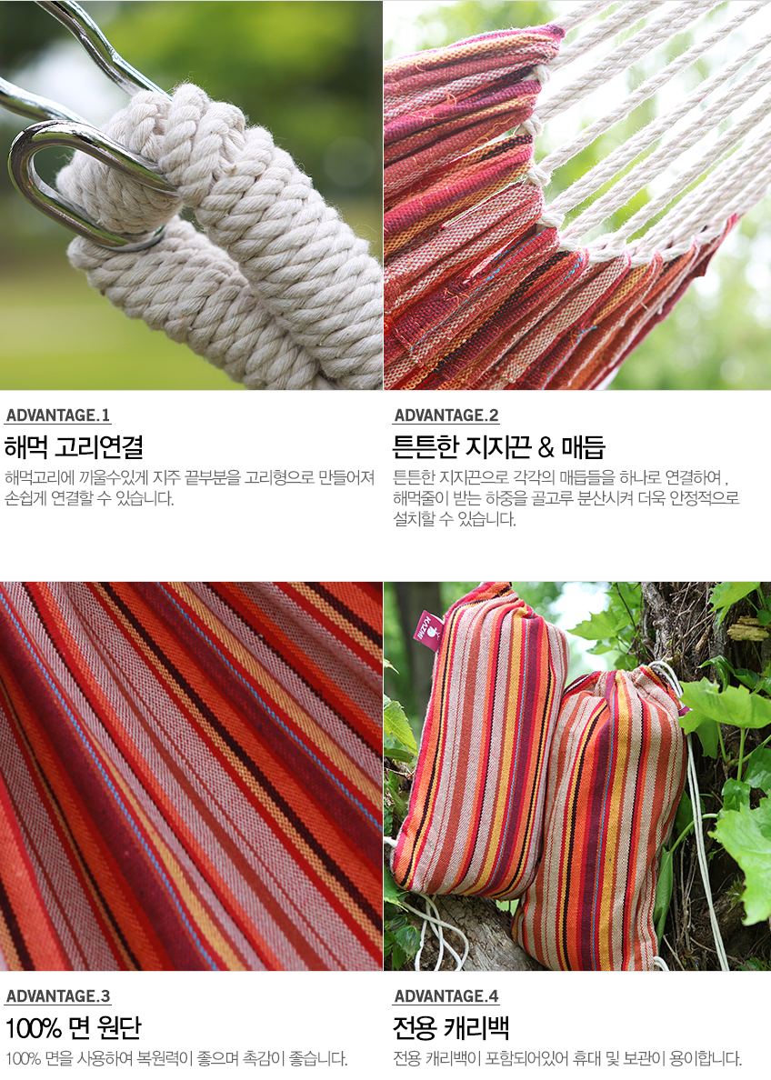 • Chất liệu: võng xếp du lịch Kazmi sử dụng chất liệu vải 100% cotton thô mềm mại, không gây cảm giác bí nóng khi sử dụng. Tuy nhiên vẫn vô cùng chắc chắn và có độ bền sử dụng cao. Chất liệu cotton thô cũng dễ dàng được giặt sạch và nhanh khô mỗi khi bạn vệ sinh chúng. Võng xếp du lịch Kazmi có các đầu dây bằng dù được bện chặt cùng một chiếc móc kim loại chắc chắn đi kèm giúp bạn có thể dễ dàng móc chúng ở bất cứ nơi đâu.