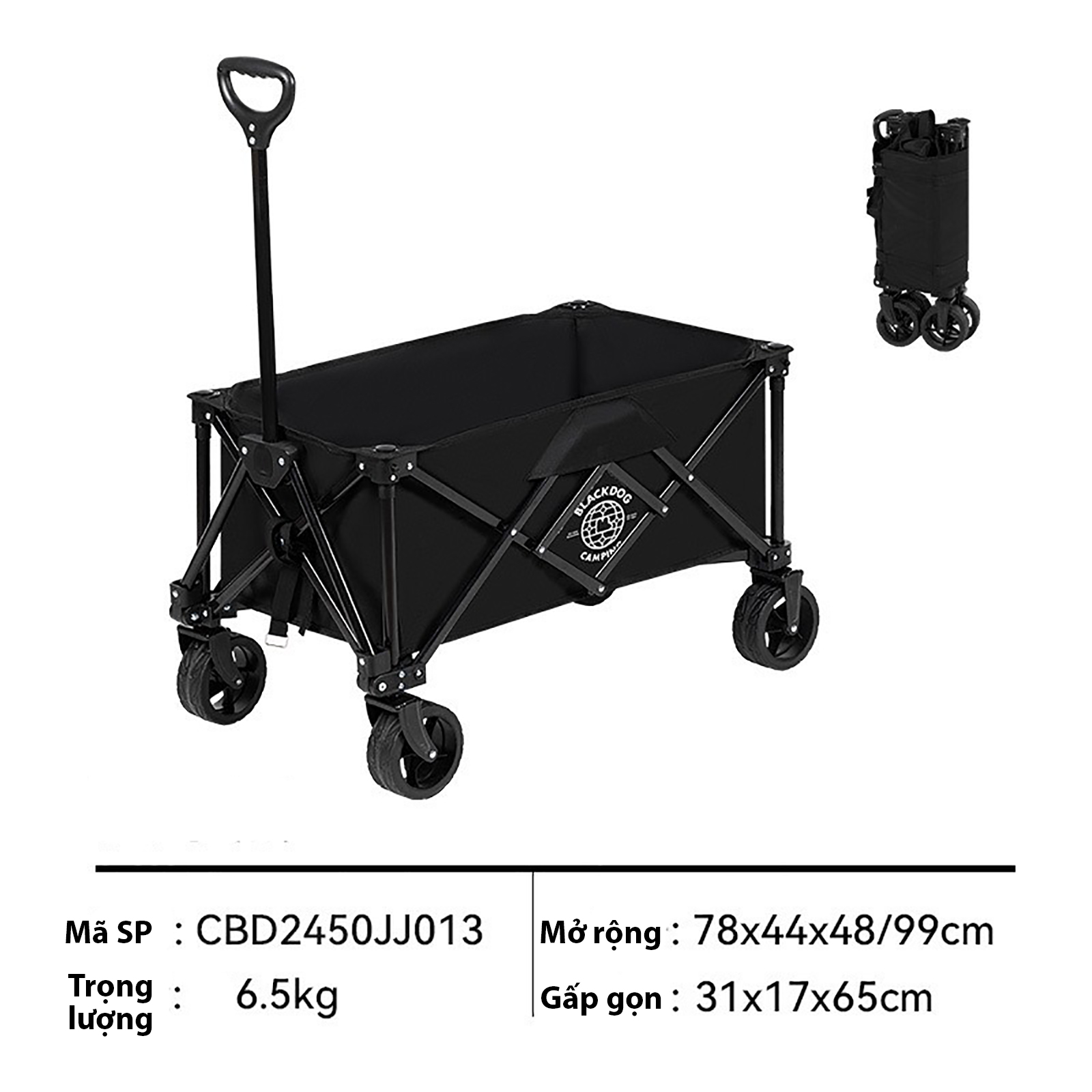 Xe kéo dã ngoại gấp gọn Blackdog Portable Camping Cart CBD2450JJ014 – Giải pháp vận chuyển linh hoạt cho mọi chuyến đi!